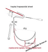 Konstrukce háku přizpůsobená trapézové plechové krytině.