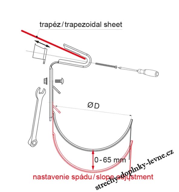 Tento speciální střešní hák je navržen pro upevnění střešního žlabu přímo na trapézový profil střešní. Hák umožňuje stabilní a bezpečné uchycení žlabu bez nutnosti demontáže větší části krytiny. Ideální řešení při rekonstrukcích či střechách s plechovou krytinou.